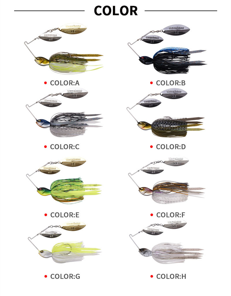 Reminiscent of a Tai Kabura jig, the flow of the skirt responds to the vibrations of the blades and the speed of the retrieve, creating a unigue lifelike appearance. On the fall ar during slow retrieves, the skirt undulates seductively, ellciting a natural reaction in every case. Your chances of a bite will skyrocket.